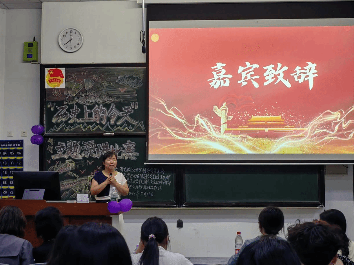 5月17日,tyc5997太阳集团于铭志楼B102教室举办“历史上的今天”主题演讲比赛。公司教师高晶莹、郝敏汐以及员工会主席团部分成员作为嘉宾参与本次活动。